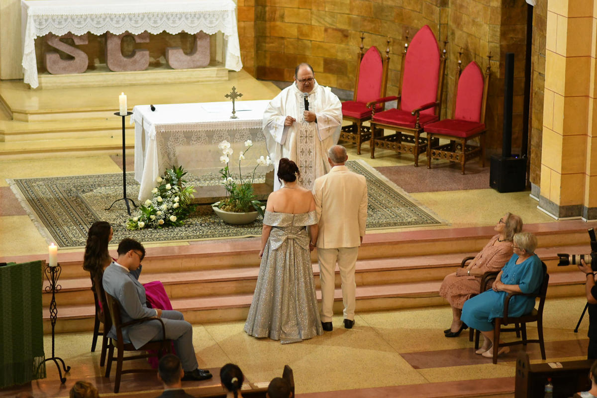 25 anos de uma história que merece ser celebrada com essa grandeza! ✨ Anderson e Cintia disseram "sim" novamente, comemorando suas Bodas de Prata em um cenário que dispensa apresentações: o magnífico Seminário de Corupá.